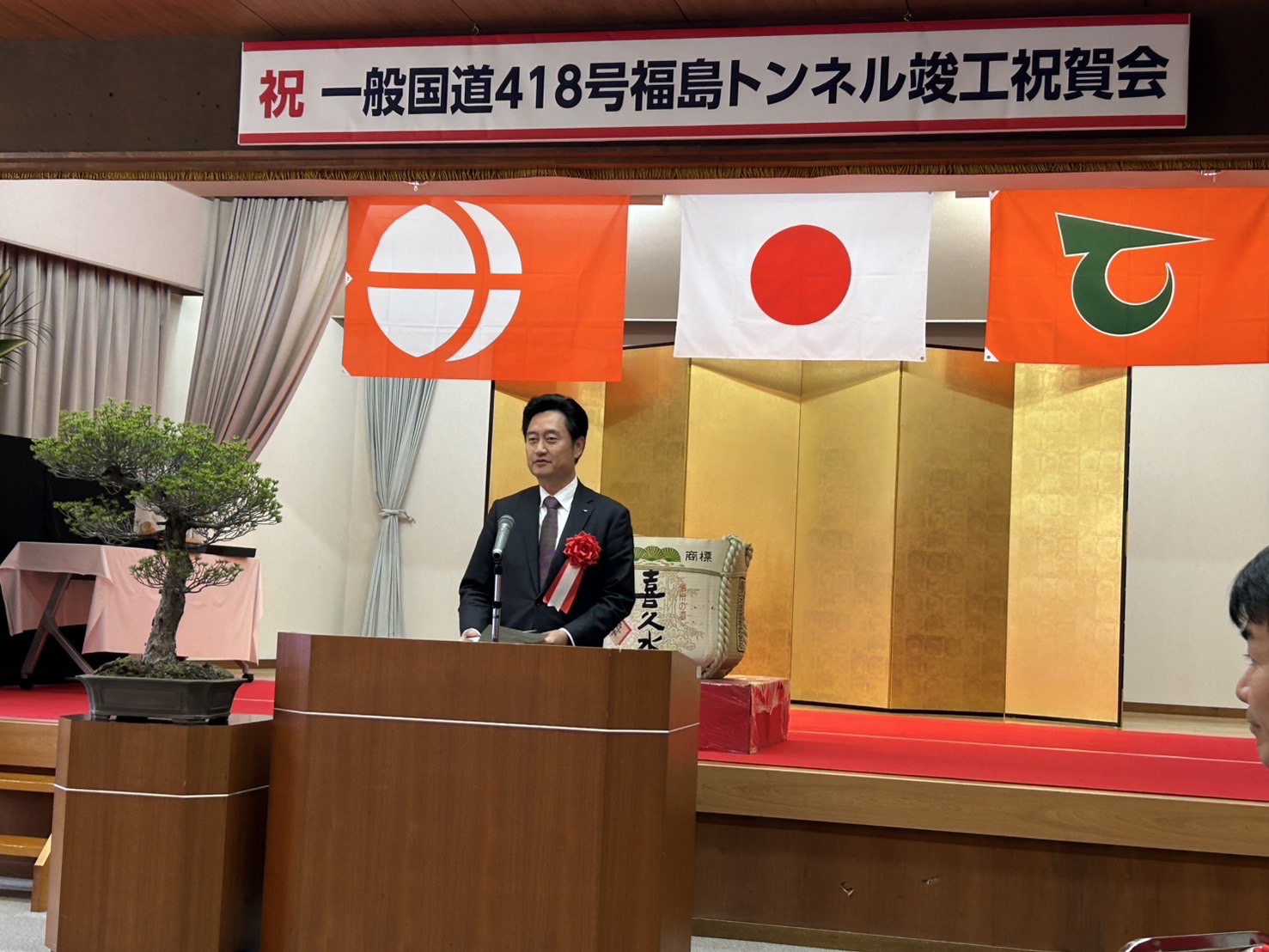 4月29日、周囲の山々が新緑に包まれる中、天候にも恵まれ一般国道418号福島トンネル竣工祝賀式を開催しました。