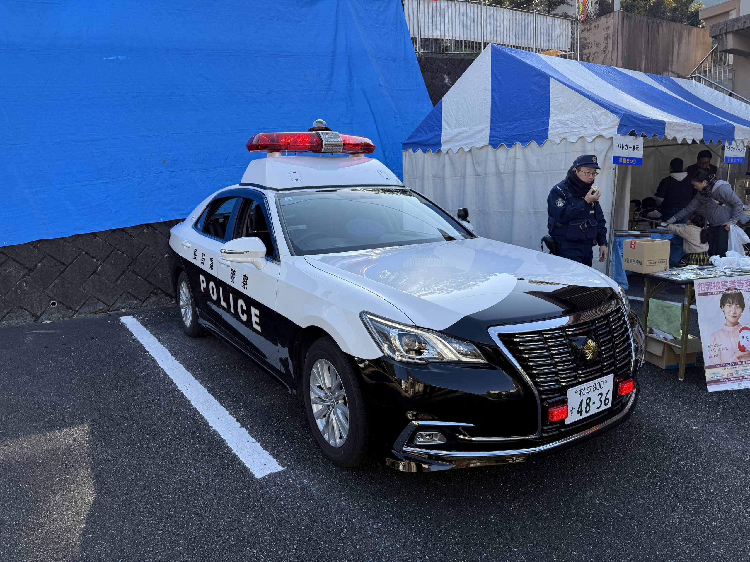 さらに、館外では物販テントが並びいも振る舞いやりんごやゆずすけドーナッツ、海産物などが販売されるほか、パトカーの乗車体験や子供たちの遊具も設置され大変賑わっていました。