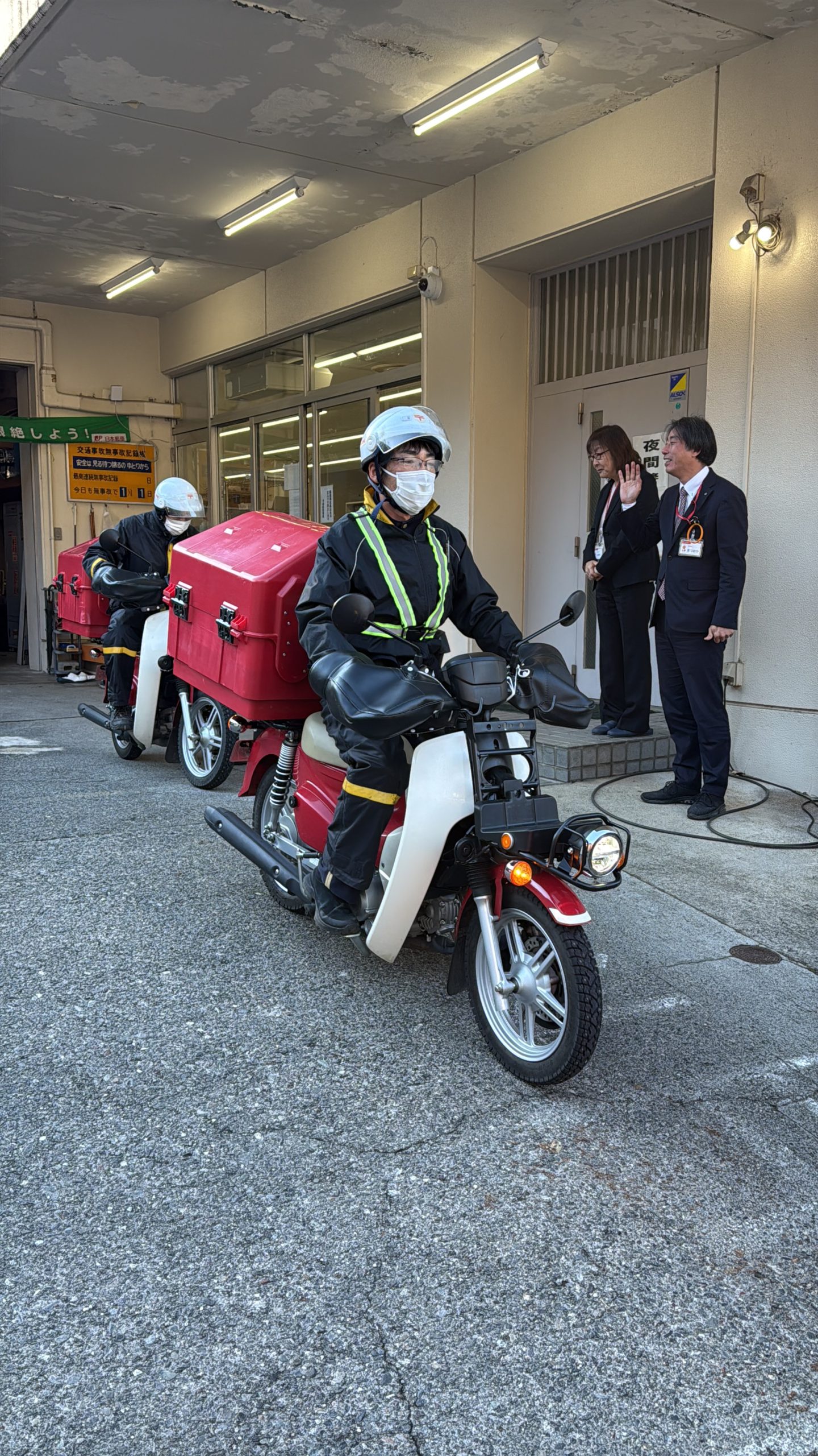 年賀じまいが拡大したり、郵便料金の値上がりやインターネットの普及等が原因ではないかとのことですが、年賀状は日本古来からの元旦の風物詩でもあります。そうした意味で心のこもった年賀状も沢山あるかと思いますので、交通安全には十分気を付けていただきながら、どうか確実にお届けいただきたいとお願いしました。
