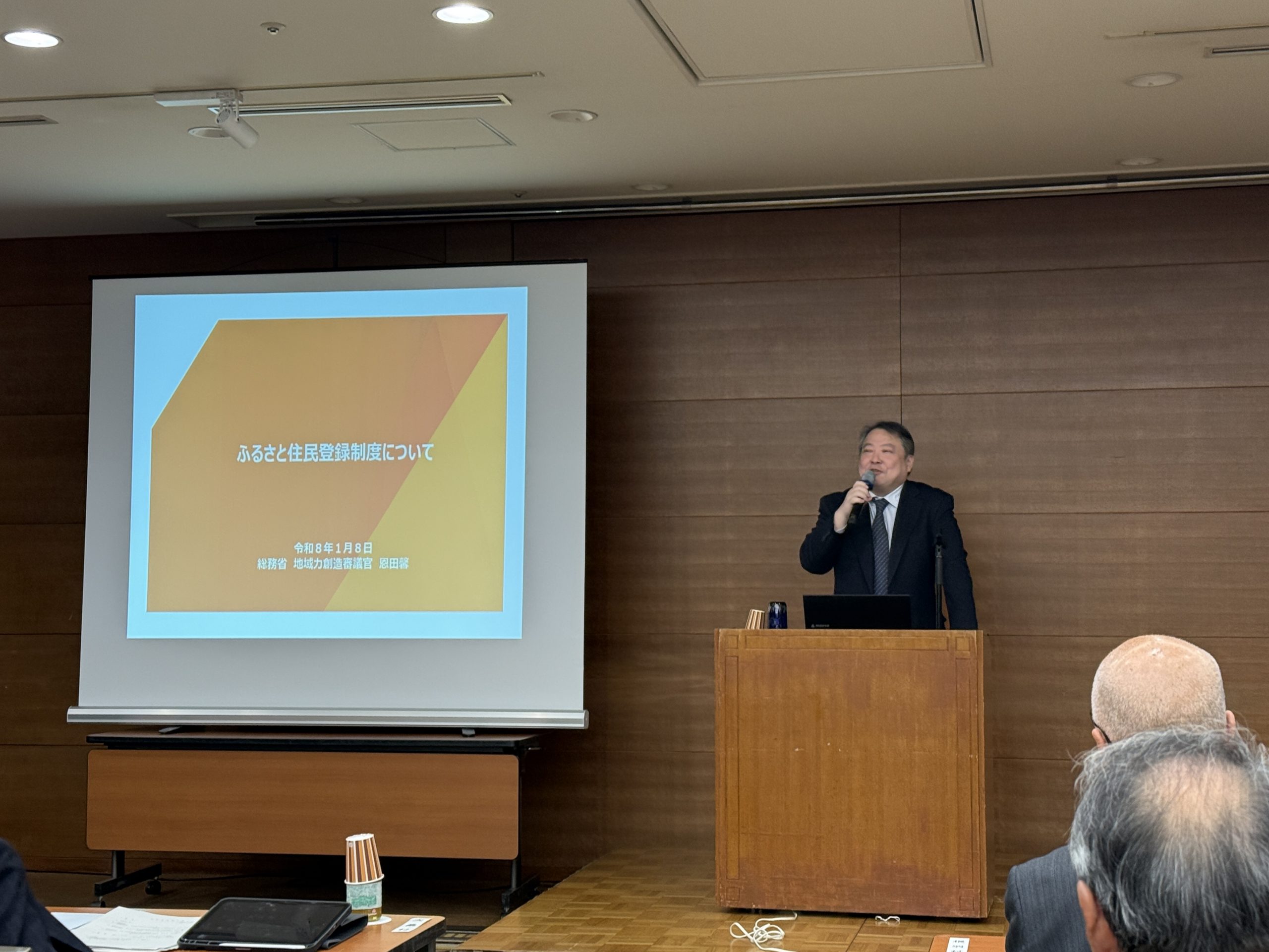 会議では、総務省出口自治財政局長による「令和8年度地方財政対策について」、総務省恩田大臣官房地域力創造審議官による「ふるさと住民登録制度について」、環境省自然観光局佐々木野生生物課鳥獣保護管理室長による「クマ対策について」の施策説明があり、その後、一般社団法人せたがや音楽プロジェクトのみなさんによる「困った子は困っている子ー奈良少年刑務所の絵本と詩の授業」と題した講演がありました。