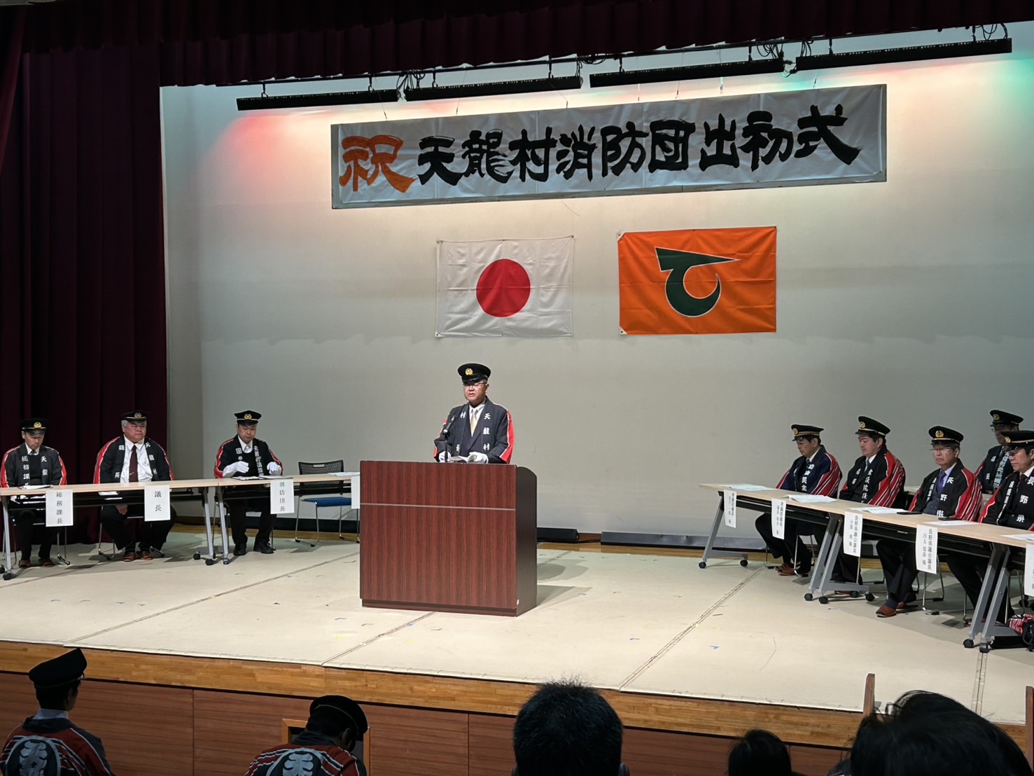 国会議員はじめ多くのご来賓の皆様にご臨席いただき、厳粛の中盛大に挙行することができました。団員数が減少し、団員一人一人にかかる負担は増大していますが、消防の使命である郷土の安心・安全を守るため、昼夜を問わず献身的にご尽力いただいている消防団員に対し、改めて深く感謝申し上げます。こうした消防団の活動のおかげで、村内では火災が5年以上発生しておりません。引き続き無火災が続くこと、さらには、今年1年が災害等のない平穏な年となるよう祈念いたします。